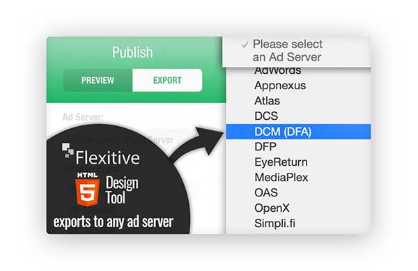 • Export for all leading ad platforms, servers and DSPs including DCM, Adwords and AppNexus